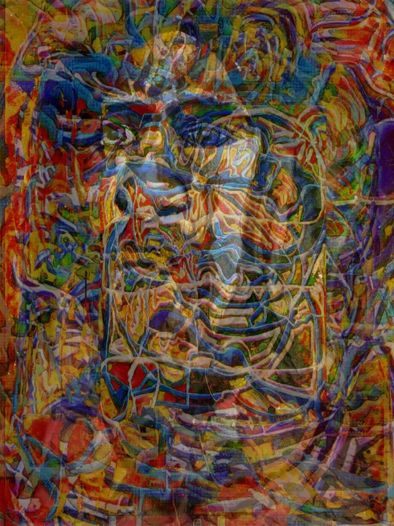Digital collage, integrating a digital abstract with a mixed media portrait
